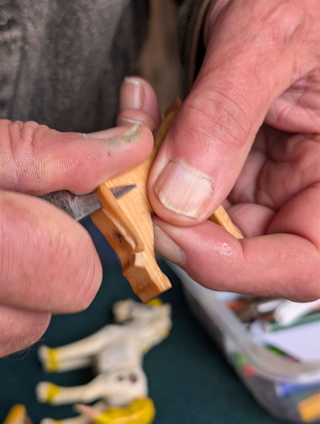 Sie erfahren, wie man Werkzeuge fachgerecht schärft, Schnitzrohlinge vorbereitet, Schnitzprojekte entwirft und sicher umsetzt. Die Technik wird Schritt für Schritt vermittelt – zunächst unter Anleitung, dann zunehmend selbstständig. Auch die farbliche Gestaltung (Fassung) der fertigen Werke ist möglich.